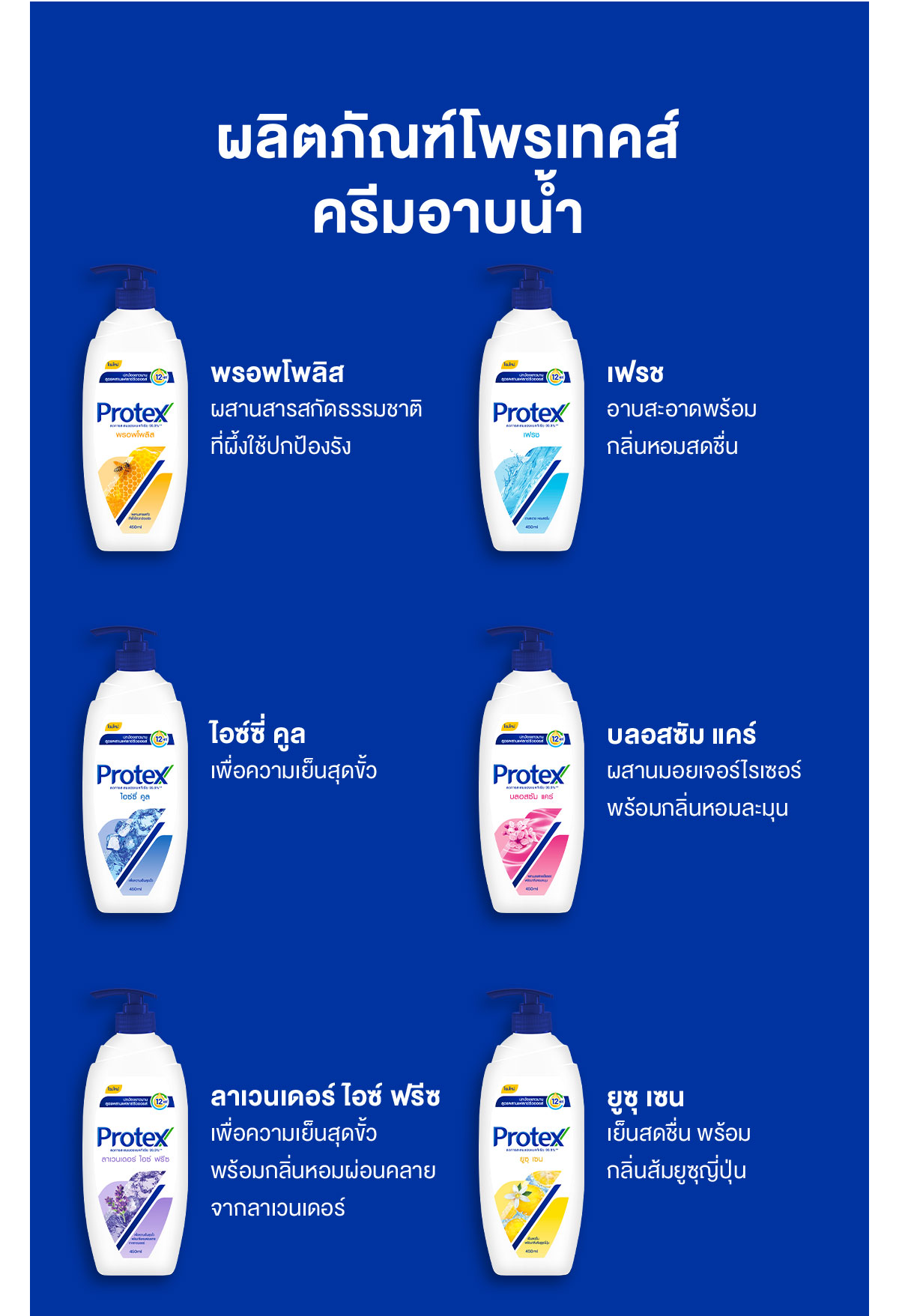 โพรเทคส์ ครีมอาบน้ำ ลาเวนเดอร์ ไอซ์ ฟรีซ สูตรเพื่อความเย็นสุดขั้ว พร้อมกลิ่นหอมผ่อนคลายจากลาเวนเดอร์ และช่วยลดแบคทีเรีย สาเหตุหนึ่งของกลิ่นกาย ผสานแฟลกซ์ซีดออยล์ ทำงานร่วมกับผิว ช่วยเสริมสร้างการปกป้องผิวจากแบคทีเรียตามธรรมชาติ ลดการสะสมของแบคทีเรีย 99.9 เพื่อสุขภาพผิวที่ดีของคุณ โพรเทคส์ ครีมอาบน้ำ ลาเวนเดอร์ ไอซ์ ฟรีซ สูตรเพื่อความเย็นสุดขั้ว พร้อมกลิ่นหอมผ่อนคลายจากลาเวนเดอร์ และช่วยลดแบคทีเรีย สาเหตุหนึ่งของกลิ่นกาย ผสานแฟลกซ์ซีดออยล์ ทำงานร่วมกับผิว ช่วยเสริมสร้างการปกป้องผิวจากแบคทีเรียตามธรรมชาติ ลดการสะสมของแบคทีเรีย 99.9 เพื่อสุขภาพผิวที่ดีของคุณ