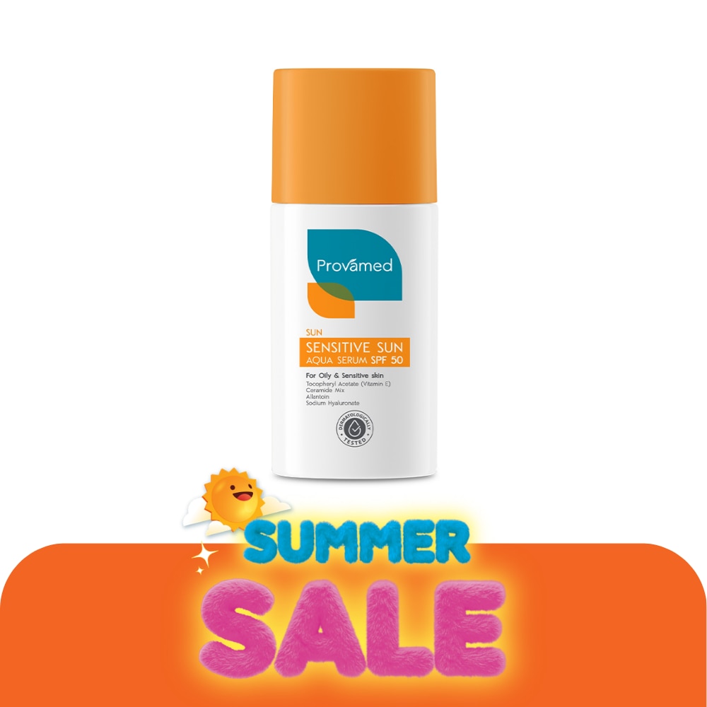 กันแดด Provamed โปรวาเมด เซนซิทิฟ ซัน อะควา เซรั่ม เอสพีเอฟ50 40มล