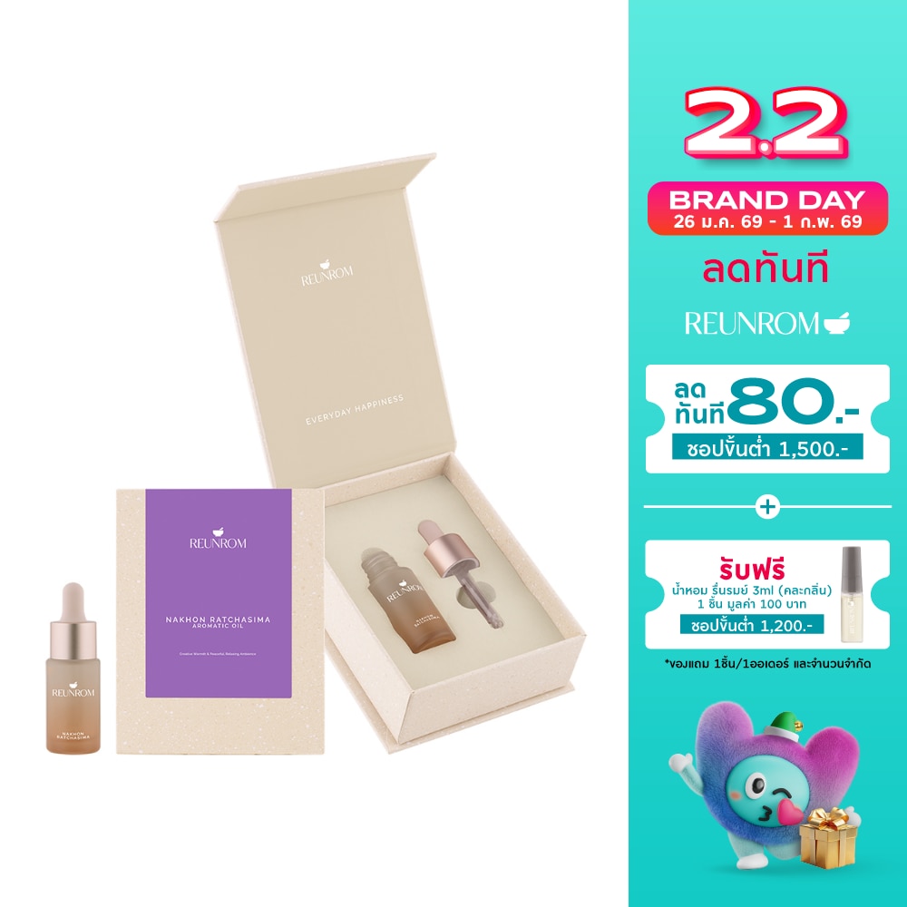 ฟรี น้ำหอม รื่นรมย์ 3ml (คละกลิ่น) 1 ชิ้น เมื่อซื้อสินค้า Reunrom ครบ ทุกๆ 1,200 บาท