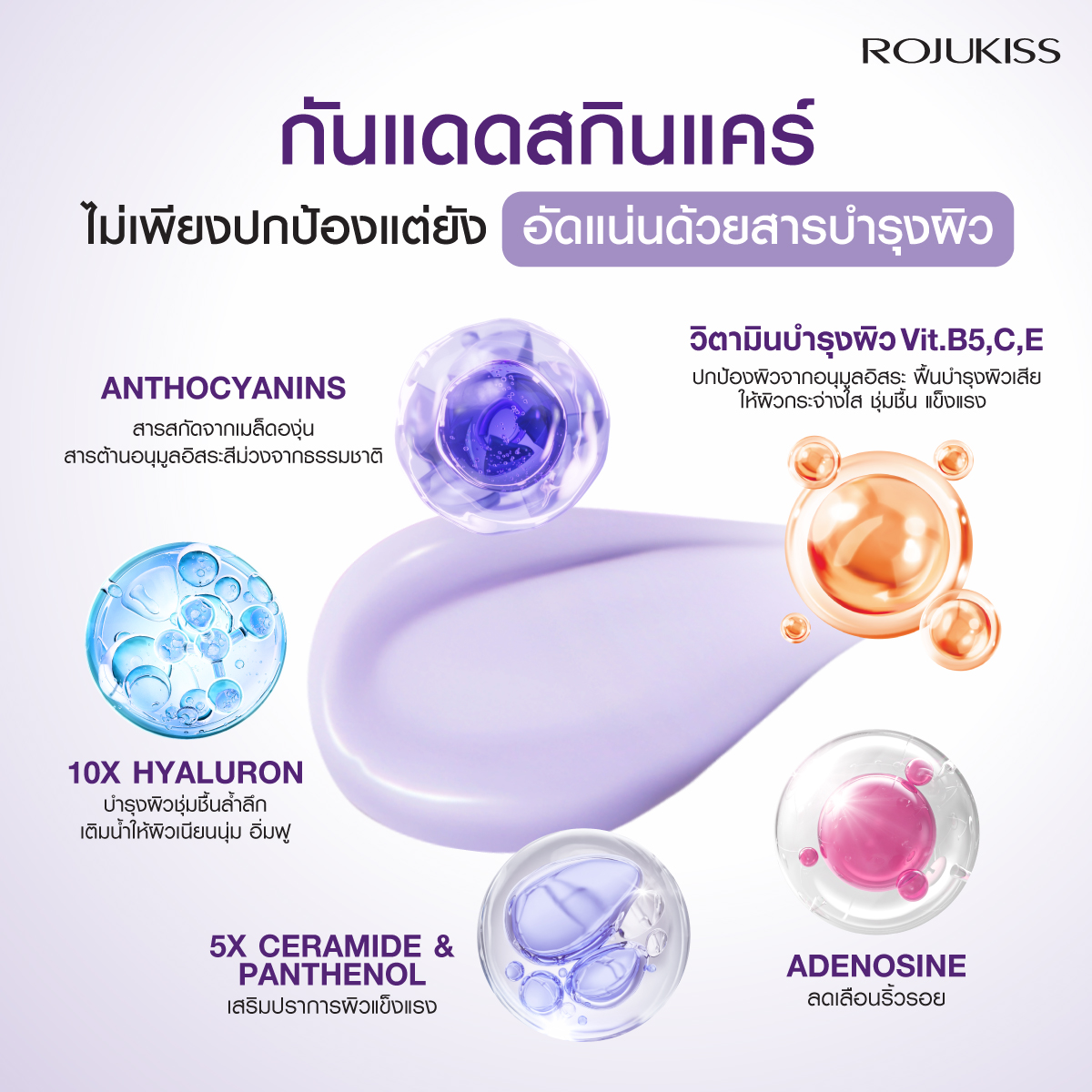 กันแดดสติ๊ก แบบแท่ง ใช้ง่ายแค่ปาด สามารถใช้เติมระหว่างวันได้ ให้ผิวดูขาวกระจ่างใสขึ้นอย่างเป็นธรรมชาติ ด้วย Tone up เนื้อม่วง ช่วยลดความเหลืองของผิว ปรับผิวดูสว่างขึ้นทันที ให้ผิวโกลว์ตลอดวัน พร้อมปกป้องผิวจากรังสี UV ที่ทำร้ายผิวในทุกๆวัน -IN VIVO SPF TEST ปกป้องผิวจากรังสี UVA amp; UVB ที่เป็นอันตรายต่อผิว ในระดับสูงสุดด้วยค่า SPF50+ PA++++ -ผ่านการทดสอบ UV PHOTOSTABILITY ว่าปกป้องได้ยาวนาน -อุดมด้วยสารบำรุงผิวแบบจัดเต็ม -ANTHOCYANINS สารสกัดจากเมล็ดองุ่น สารต้านอนุมูลอิสระสีม่วงจากธรรมชาติ -วิตามินบำรุงผิว Vit B5,C,E ปกป้องผิวจากอนุมูลอิสระ ฟื้นบำรุงผิวเสีย ให้ผิวกระจ่างใส ชุ่มชื้น แข็งแรง -5X CERAMIDE amp; PANTHENOL เสริมปราการผิวแข็งแรง ป้องกันการระคายเคืองจากแสงแดด -5X สื่อถึงสารเซราไมด์ 5 ชนิดในสูตร -จากการทดสอบความคงตัวต่อแสง (Photostability Test) ของผลิตภัณฑ์ โดย SID BIO Inc. ประเทศเกาหลี มิ.ย. 2568. -แนะนำให้ทาซ้ำทุกๆ 1-2 ชั่วโมง เพื่อการป้องกันแสงแดดที่มีประสิทธิภาพต่อเนื่อง