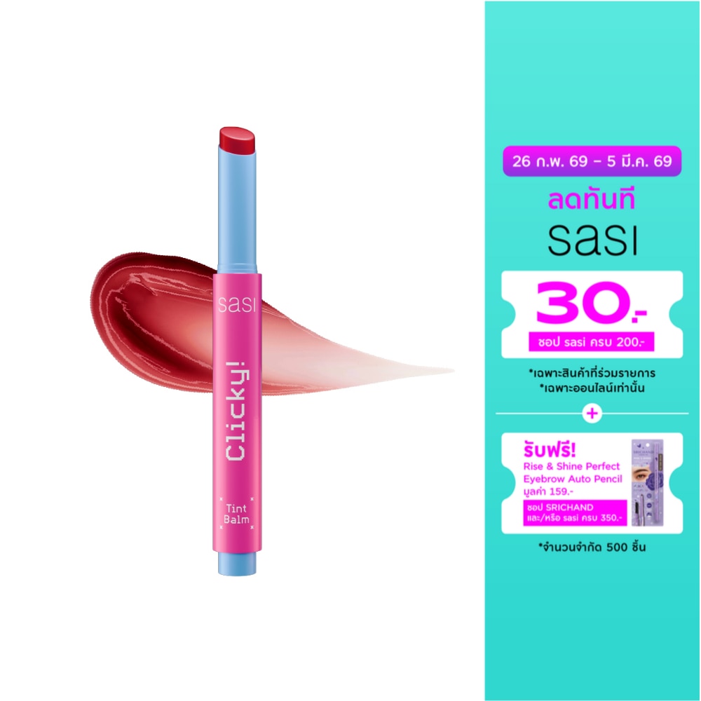 ศศิ คลิกกี้ ทินท์ บาล์ม ลิปทินท์เนื้อบาล์ม ให้ปากแลดูเอิบอิ่ม ฉ่ำวาว มาในรูปแบบแท่งพร้อมปุ่มกด ให้เนื้อลิปออกมาพอเหมาะกับการใช้งาน เนื้อลิปนุ่ม บางเบา ไม่หนักปาก เคลือบริมฝีปากสนิท ให้ความรู้สึกเย็นสดชื่นหลังทา และชุ่มชื้นขึ้นตั้งแต่ครั้งแรกที่ใช้ มาพร้อมการบำรุงอย่างเข้มข้น ด้วย 1 Fuller Lips ซึ่งเป็นสารที่จำเป็นต่อการสร้าง Elastin และ Collagen ช่วยให้ปากเนียนนุ่ม อวบอิ่ม ปากแลดูเรียบเนียนอย่างเป็นธรรมชาติภายใน 28 วัน รวมถึงมี Vitamin E ช่วยให้ปากชุ่มชื้น ปกป้องปากจากความแห้งกร้าน และ มลภาวะภายนอก ซึ่งเป็นสาเหตุของริ้วรอยก่อนวัย ได้ทั้งบำรุงและริมฝีปากแลดูสดใสในแท่งเดียว