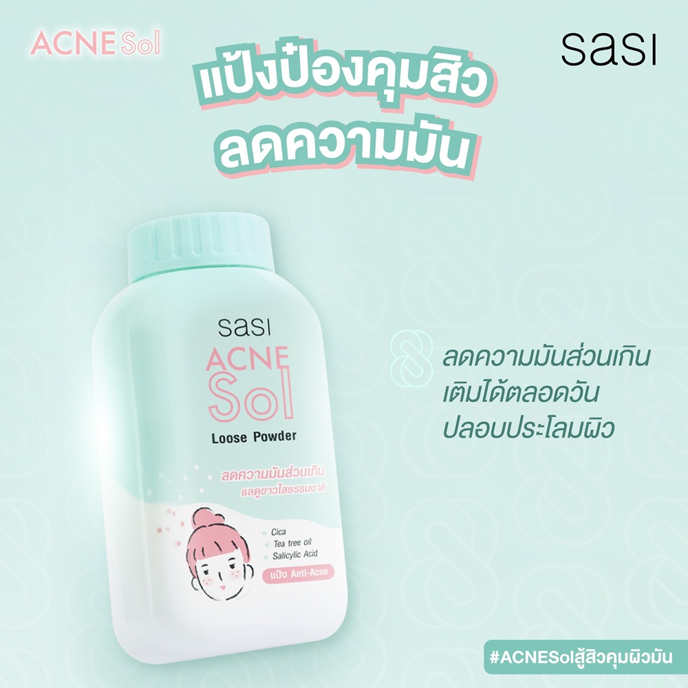แอคเน่ โซล ลูส พาวเดอร์แป้งฝุ่นสูตรอ่อนโยน ลดปัญหาสิว และคุมมัน ผิวแลดูกระจ่างใสธรรมชาติด้วยเทคโนโลยี Encapsulation ช่วยลดโอกาสการเกิดสิวอย่างประสิทธิภาพ พร้อมสารบำรุงที่ช่วยลดการระคายเคือง และรอยแดงจากสิว คุมมัน ดูดซับความมันส่วนเกินบนใบหน้า อันเป็นสาเหตุหนึ่งของการเกิดสิว ให้ผิวแลดูเนียนสวยตลอดวัน