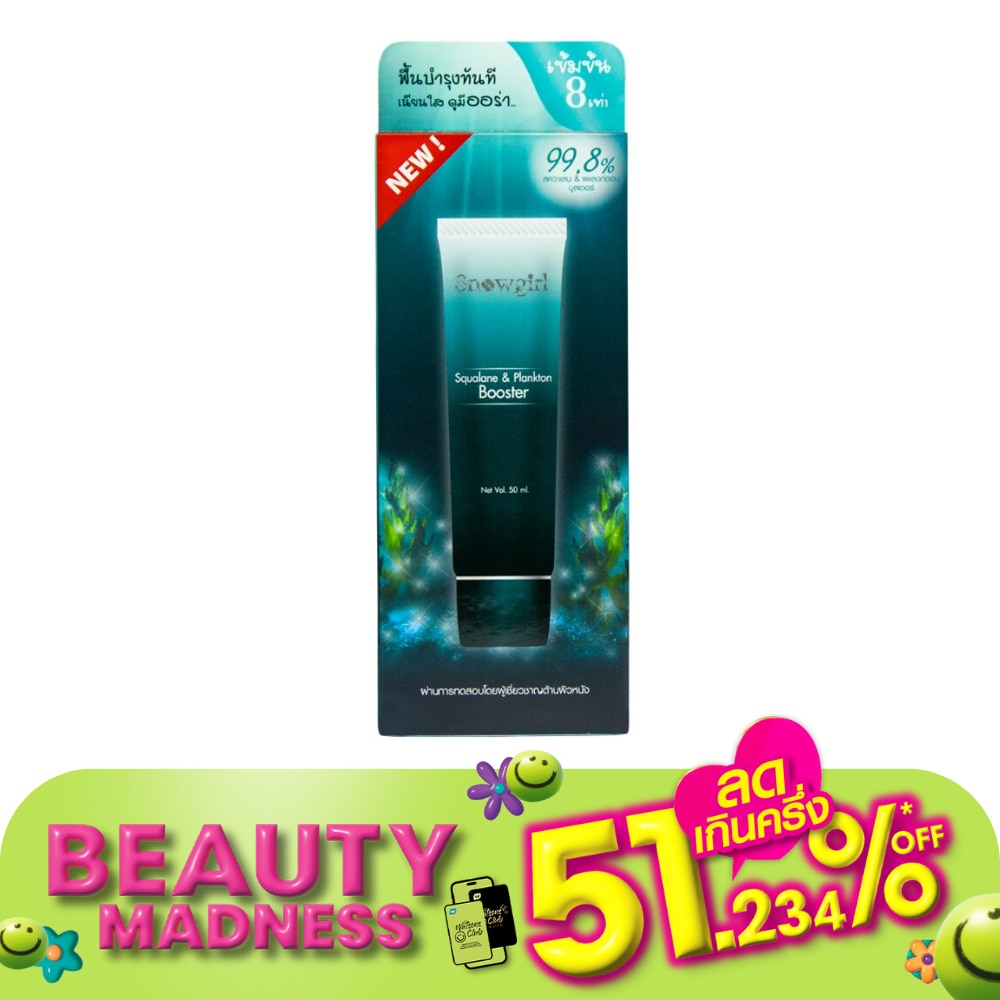 สัมผัสผิวเปล่งปลั่ง ชุ่มชื้น ดูฉ่ำน้ำ ด้วยบูสเตอร์เนื้อเจล อุดมด้วยสารสกัดแพลงก์ตอนจากทะเลน้ำลึก และสควาเลนที่ช่วยบำรุงเพิ่มความชุ่มชื้นให้ผิวใสยาวนาน พร้อมเทคโนโลยี Water Bomb ที่โอบอุ้มน้ำในโมเลกุลคืนความชุ่มชื้นยายนานให้ผิวหน้า ให้ผิวแลดูเรียบเนียนกระจ่างใส ไม่มันวาว ดูอ่อนเยาว์มากยิ่งขึ้น