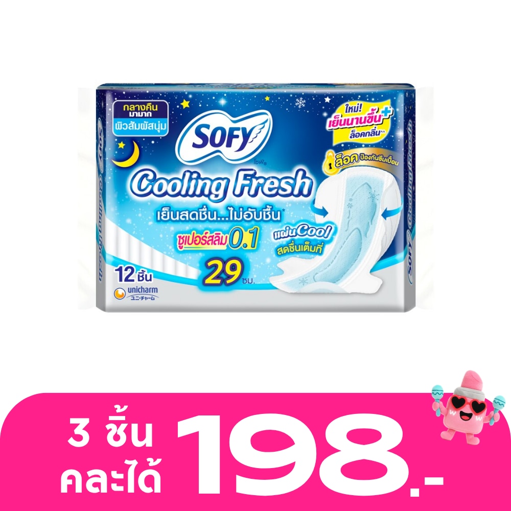 SOFY Cooling Fresh ผ้าอนามัยแบบเย็น ด้วยเทคโนโลยีใหม่ “แผ่นคูล” ให้ความรู้สึกเย็นสบายตั้งแต่เริ่มใส่ ช่วยลดความอับชื้น สาเหตุของกลิ่น ยาวนานแค่ไหน ก็สบายตัวเหมือนเปลี่ยนแผ่นใหม่ตลอดวัน