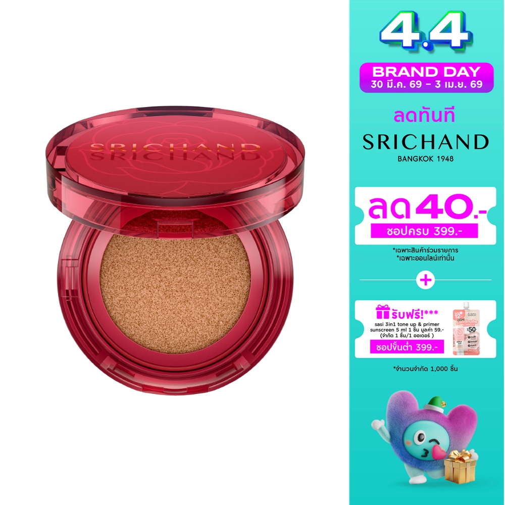ศรีจันทร์ ซูเปอร์ คัฟเวอเรจ ออเวส์ แมทต์ คุชชั่น เอสพีเอฟ50+ พีเอ++++ คุชชั่นสร้างผิว ปกปิดสูงสุด คุมมัน 14 ชม คุชชั่นเนื้อแมตต์ ให้การปกปิดระดับสูงสุดมอบผิวสวยเรียบเนียน กลบมิดทุกปัญหาผิว ทั้งริ้วรอยและจุดด่างดำ เกลี่ยง่าย ไม่เป็นคราบ สัมผัสเบาสบายผิว ผิวเป๊ะเปรียบเสมือนใส่ฟิลเตอร์ให้ใบหน้า ผสานคุณค่าการบำรุงจาก 3X Ceramide Niacinamide และ Centella Asiatica ที่ช่วยเพิ่มความชุ่มชื้น ลดการสูญเสียน้ำ และ ช่วยให้ผิวเนียนแลดูกระจ่างใส ไม่แห้งกร้าน มี Astaxanthin ที่ช่วยให้ผิวเรียบเนียน ลดการเกิดจุดด่างดำ พร้อมผงซิลิก้าที่ช่วยในการควบคุมความมันอย่างมีประสิทธิภาพ ยาวนาน ถึง14 ชั่วโมง ปกป้องผิวจากแสงแดด ด้วย SPF50+ PA++++ ทั้งหมด 6 เฉดสี