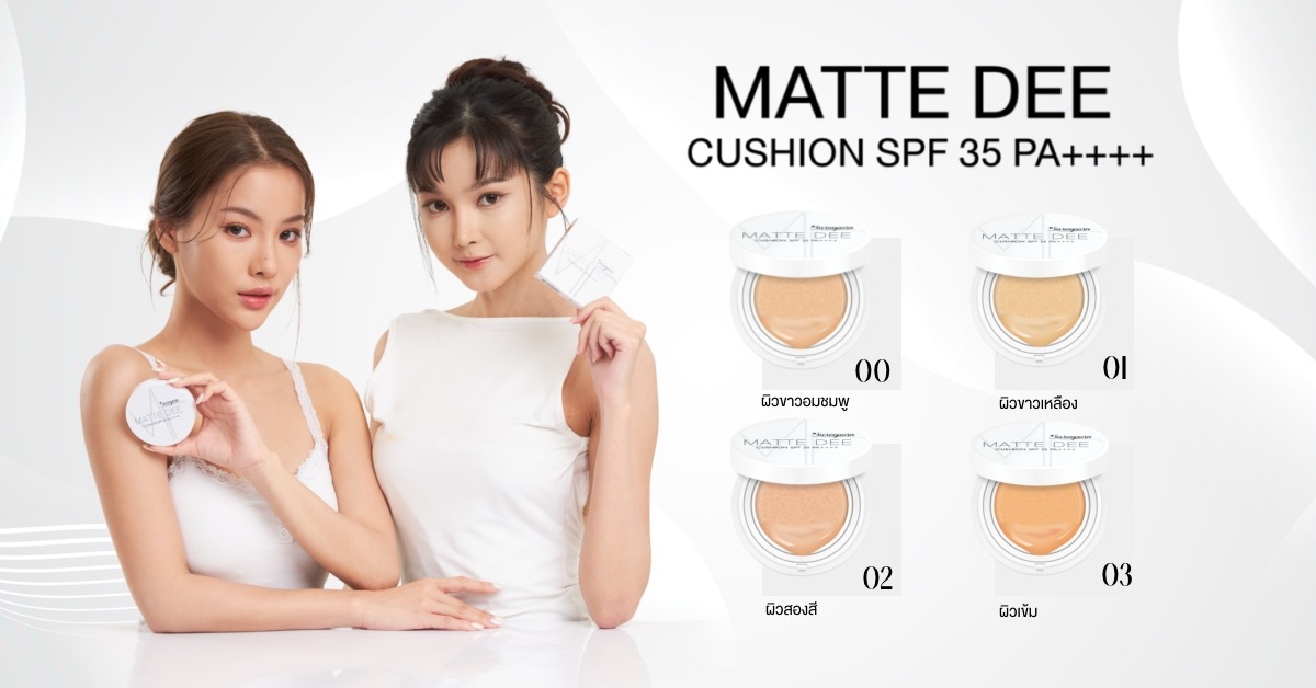 สุรีย์พร แมท ดี คุชชั่น SPF35 PA++++ คุชชั่นเนื้อแมท เนรมิตผิวสวย เกลี่ยง่าย สบายผิว ช่วยปกปิดจุดด่างดำ และริ้วรอยบนใบหน้าได้อย่างเรียบเนียน พร้อมด้วยเทคโนโลยีพิเศษที่ช่วยคุมความมันบนผิวหน้า กันน้ำ กันเหงื่อ ติดทนนานตลอดทั้งวัน มีสารสกัดกันแดด ที่ช่วยปกป้องผืวจากภัยแดดด้วยค่า SPF35 PA+++ เนื้อบางเบา ใช้แล้วไม่หนักหน้า ช่วยเบลอรูขุมขน รอยสิว กระ ฝ้า และจุดด่างดำ พร้อมปรับผิวให้ดูสว่างกระจ่างใสอย่างเป็นธรรมชาติ ควบคุมความมัน ไม่อุดตันรูขุมขน และสามารถกันน้ำได้ ปกปิดจึ้ง ต้องยกให้คุชชั่นสุรีย์พร เซ็ตตัวอยู่บนผิวได้ทั้งวัน ไม่ติดแมสก์