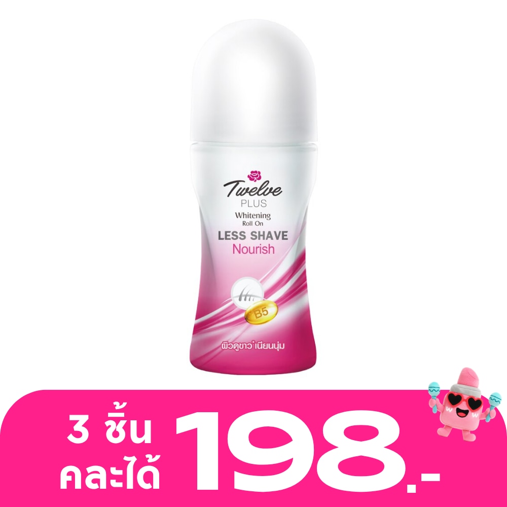 ทเวลฟ์พลัส โรลออน สูตรไวท์เทนนิ่ง เลสเชฟ แอนด์ นูริช เพื่อผิวใต้วงแขนเนียนนุ่มชุ่มชื่นอย่างเป็นธรรมชาติ ผสมเลสเชฟ เซรั่ม นวัตกรรมเฉพาะของทเวลฟ์พลัส ช่วยลดการเกิดขนลงถึง 20% เมื่อใช้เป็นประจำ พร้อมโปรวิตามินบี 5 และแอคทีฟ ไวท์คอมเพล็กซ์ ช่วยเก็บความชุ่มชื่นของผิวพร้อมปรับผิวให้ขาวกระจ่างใส จุดด่างดำดูจางลง ปราศจากแอลกอฮอล์ทำร้ายผิว ผ่านการทดสอบจากผู้เชี่ยวชาญด้านผิวหนังว่าอ่อนโยนต่อทุกสภาพผิว ปกป้อง มั่นใจยาวนาน 48 ชั่วโมง