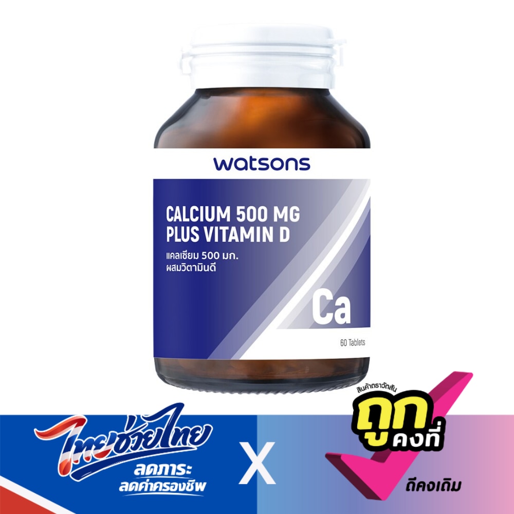 วัตสันแคลเซียม 500 มก. ผสมวิตามินดี (ผลิตภัณฑ์เสริมอาหาร) 60เม็ด