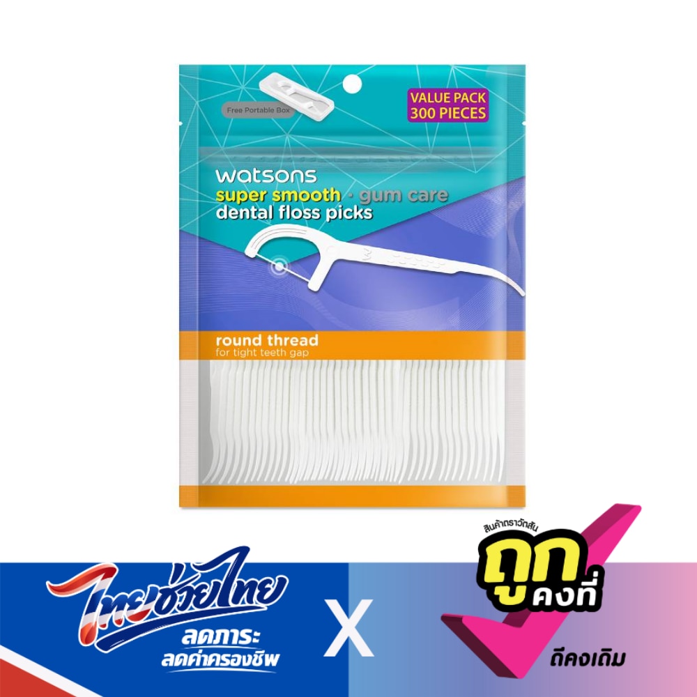 วัตสัน ซุปเปอร์ สมูธ ไหมขัดฟันเส้นกลม ชนิดด้าม (แพ็คสุดคุ้ม) 300 ด้าม
