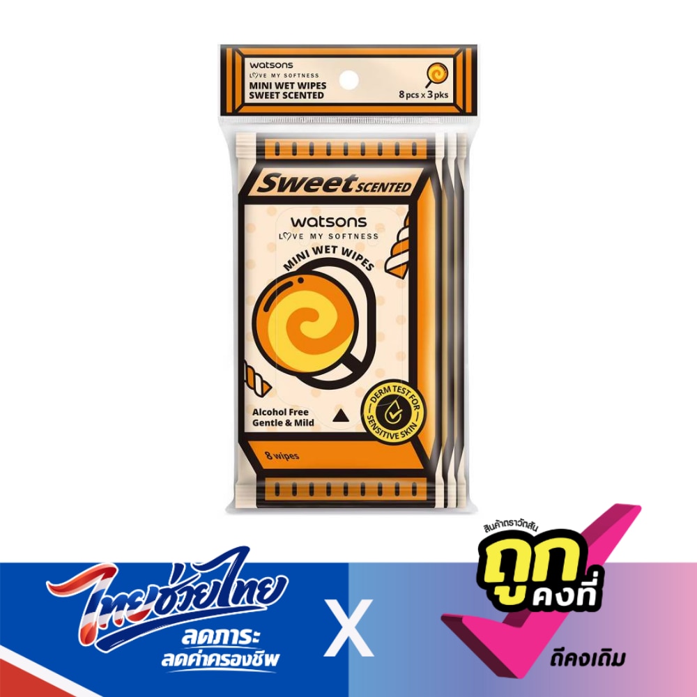 วัตสัน มินิ เว็ท ไวพ์ สวีท เซ้นท์เท็ด 8 แผ่น x 3 แพ็ค.
