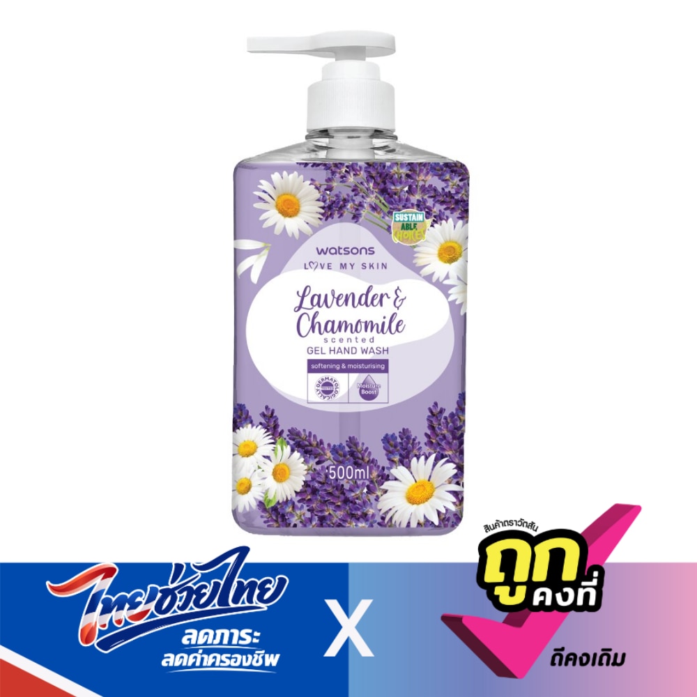 วัตสัน เลิฟ มาย สกิน ลาเวนเดอร์ แอนด์ คาโมมายล์ เซ็นทิด เจล แฮนด์ วอช 500มล.