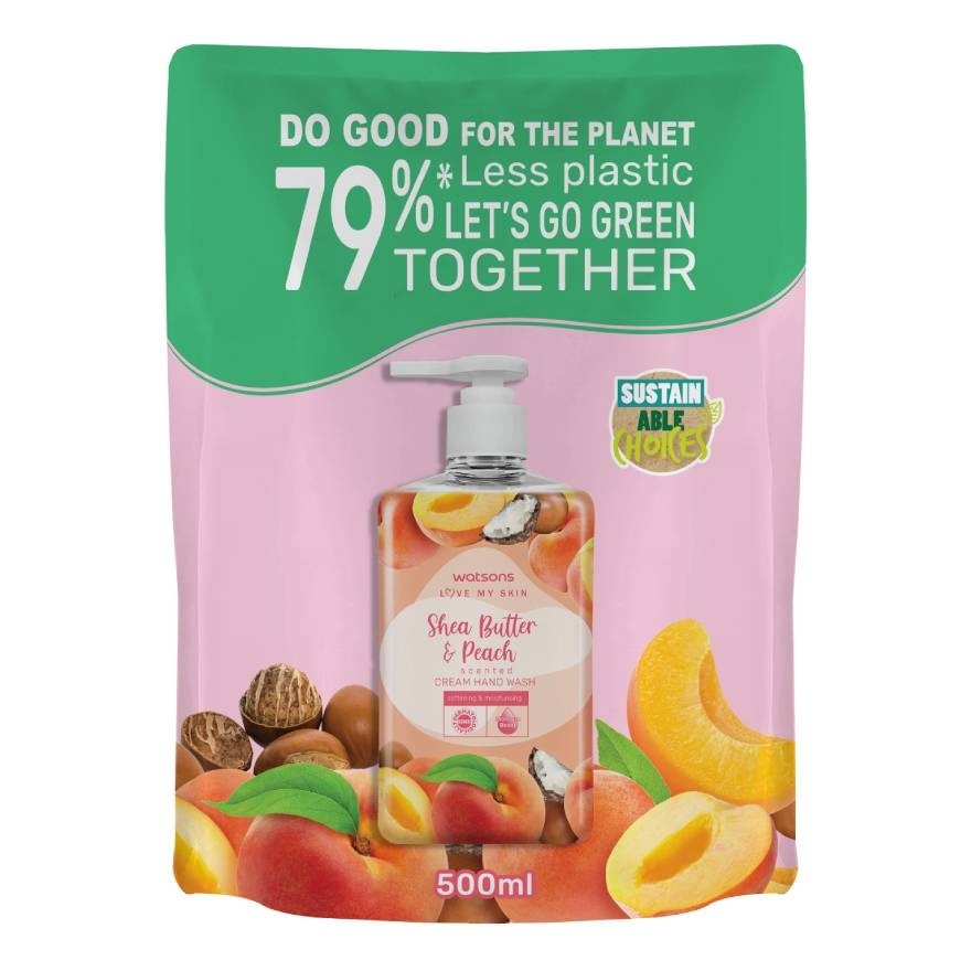 วัตสัน เลิฟ มาย สกิน เชีย บัตเตอร์ แอนด์ พีช เซ็นทิด ครีม แฮนด์ วอช 500 ml. (รีฟิล)