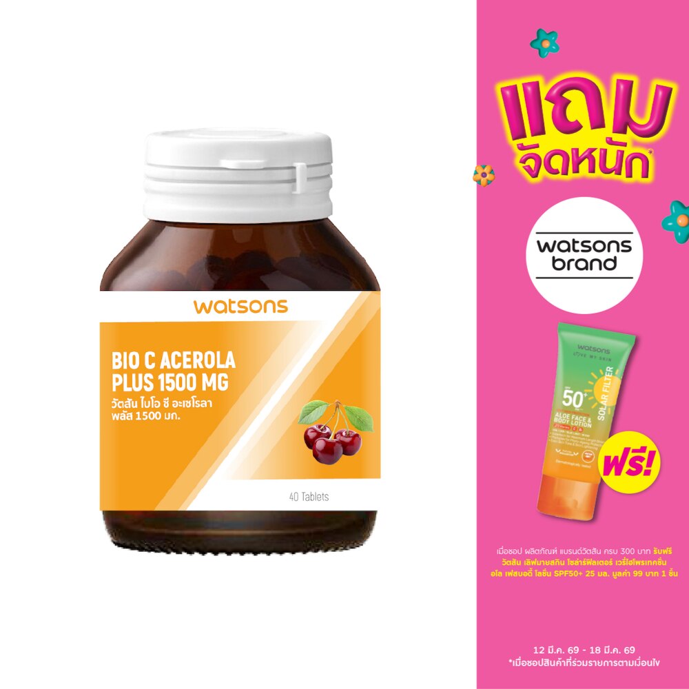 วัตสัน ไบโอ ซี อะเซโรลา พลัส 1500 มก. (ผลิตภัณฑ์เสริมอาหาร) 40 เม็ด