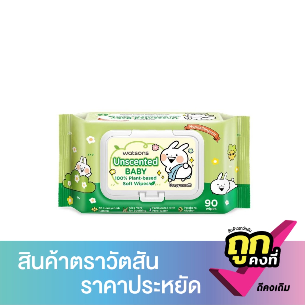 วัตสัน x Usagyuuun อันเซ้นต์เท็ด เบบี้ 100 แพลนท์-เบส ซอฟท์ ไวพ์ 90 แผ่น.